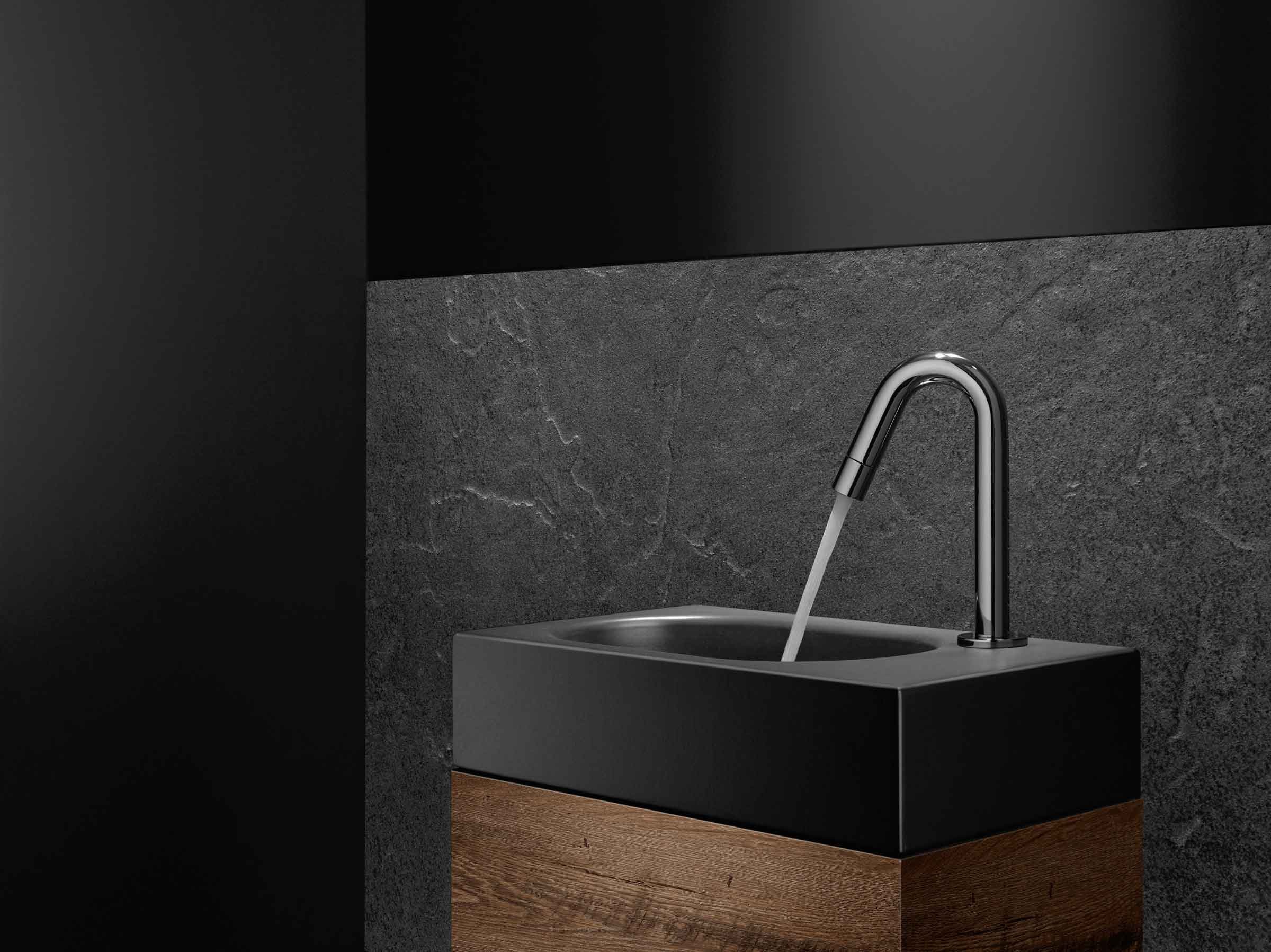 Już na początku projektowania czarnej łazienki warto pomyśleć, jaki ma mieć ogólny charakter. Sama czerń to baza, na której można budować różnorodne efekty – o to zadbają dodatki. Taka przestrzeń może być surowa, prosta i wyciszona. Wtedy stawiamy na mat, np. za pomocą baterii umywalkowej KLUDI BOZZ. Bliżej jej do filozofii zen niż ekspresyjnego baroku w stylizacji. Śmiało można też zastosować złoto i połysk – takie mogą być grzejniki, płytki, armatura czy elementy mebli.