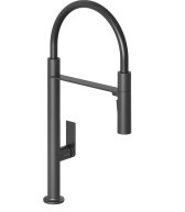 jednouchwytowa bateria kuchenna wyciągana z uchwytu rączka natrysku automat. przełącznik natrysk/strumień głowica ceramiczna obrotowa wylewka (360°) system szybkiego montażu kolor: głęboki czarny mat